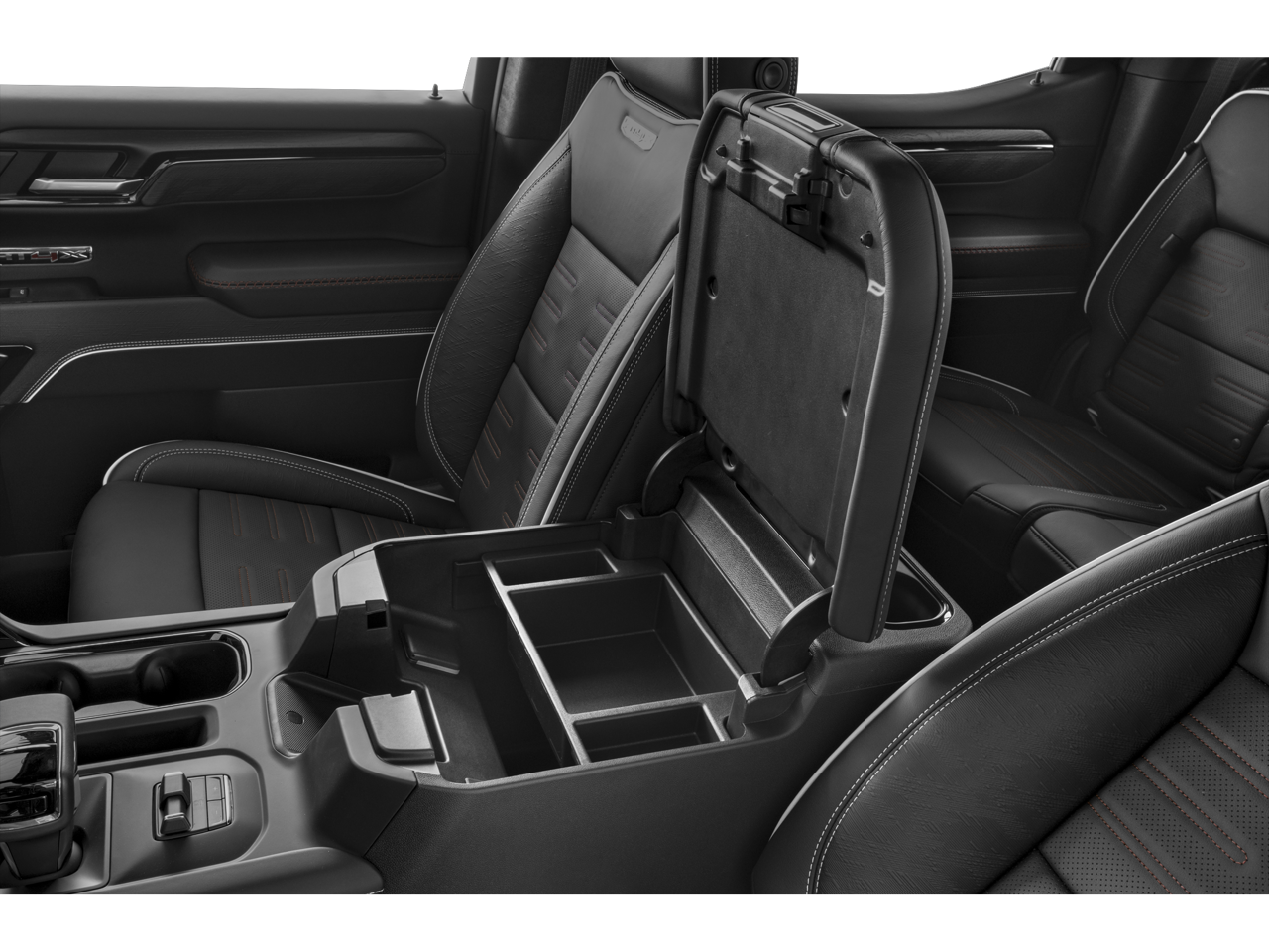 - Preferred Equipment Group 4SG: Trailer Side Blind Zone Alert; Power Sliding Rear Window with Rear Defogger; Ultrasonic Front and Rear Park Assist; Trailer Camera Provisions; Electric Rear-Window Defogger; Theft Deterrent System (unauthorized Entry); Gloss Black Header with Dark Nickel Grille Insert Bars; Front Rain-Sensing Wipers; Heavy-Duty Air Filter; Skid Plates; 120-Volt Interior Power Outlet; Heated Driver and Front Outboard Passenger Seating; Wireless Charging; Front Premium Floor Liners with Removable Carpet Insert; Color-Keyed Carpeting Floor Covering; OnStar and GMC Connected Services Capable; Driver-Selectable Full-Locking Front Differential; Heated 2nd Row Outboard Seats; Off-Road Suspension; Power Front Passenger Windows with Express Up/down; Driver-Selectable Full-Locking Rear Differential; Power Rear Windows with Express Down; Integrated Trailer Brake Controller; HD Surround Vision; Ventilated Driver and Front Passenger Seats; Power Rake and Telescoping Steering Column; Power Sunroof; Multicolor 15"" Diagonal Head-Up Display; Keyless Open and Start; Bose Premium Series with 12- Speaker System; Perimeter Lighting; Push Button Start; LED Cargo Area Lighting; Remote Vehicle Starter System; In-Vehicle Trailering System App; Hill Descent Control; Floor-Mounted Center Console; MultiPro Tailgate Audio System by Kicker; Bed View Camera; Rear Cross Traffic Braking; Trailer Tire Pressure Monitor System; GMC Pro Safety; Trailering Package; 2 USB Ports; 2 Charge/data USB Ports Inside Center Console; Steering Wheel Audio Controls; 2 type-C Charge-Only Rear USB Ports; GMC Connected Access Capable; Universal Home Remote; 2-Speed Transfer Case; Deep-Tinted Glass; Spray-On Pickup Bedliner with AT4X Logo; SiriusXM with 360L; Hitch View; Power Front Windows with Driver Express Up/down; Rear Pedestrian Detection; Wi-Fi Hotspot Capable; Rear Wheelhouse Liners; Power Door Locks