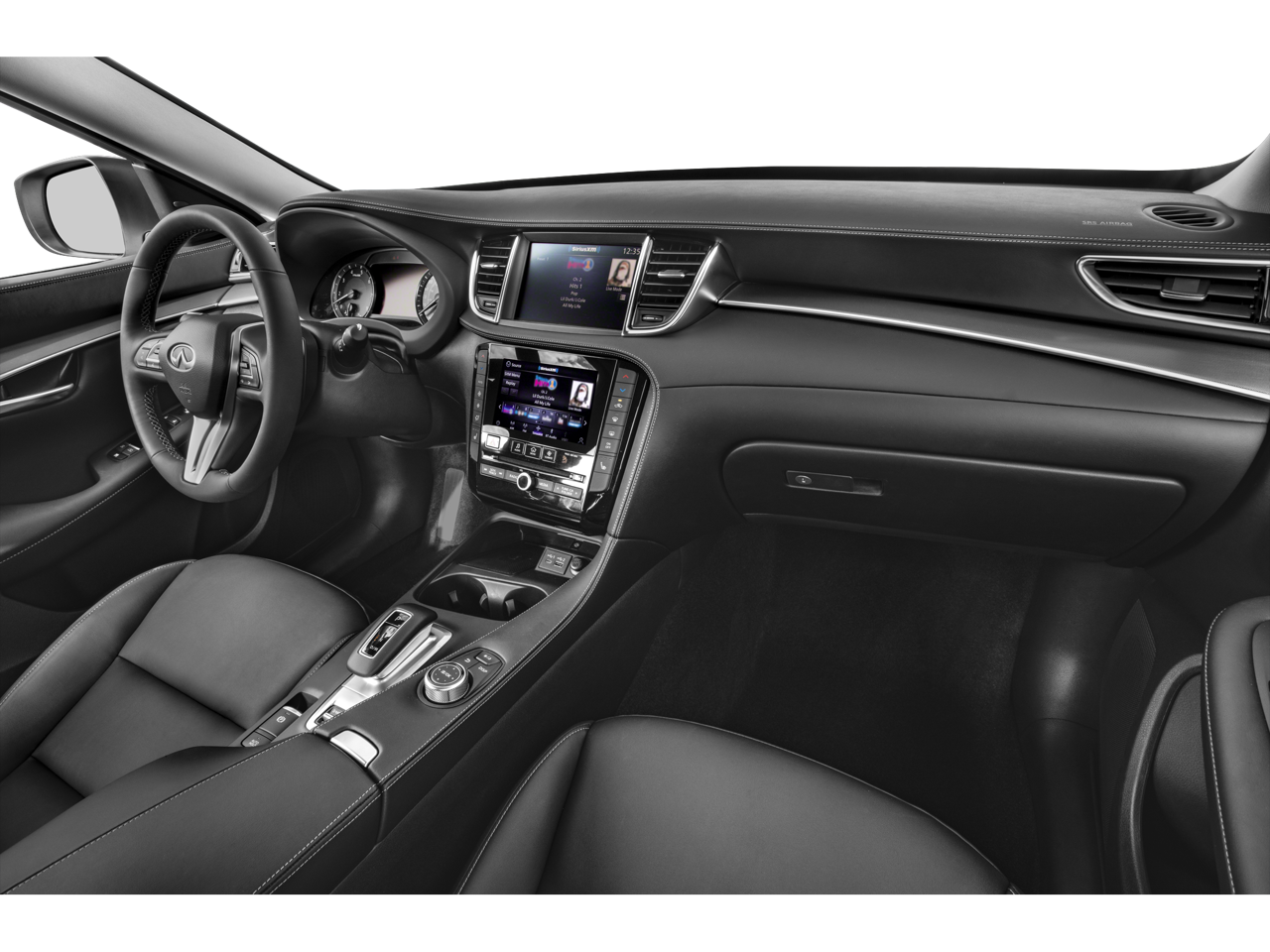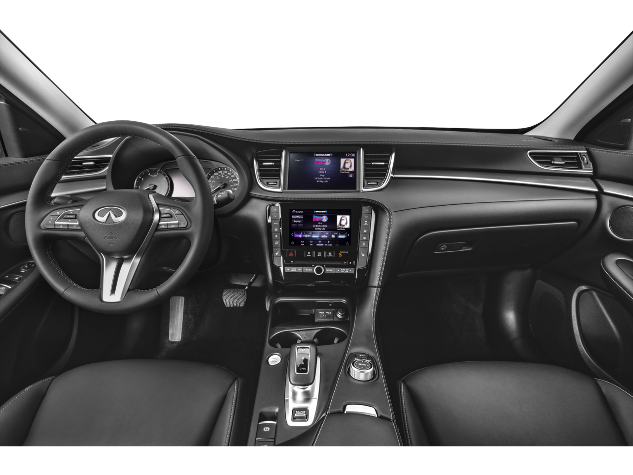 - Radio: HD Audio System -inc: 6 speakers, INFINITI InTouch, INFINITI InTouch services, INFINITI InTouch dual display system w/upper 8" and lower 7" HD touch screens, wireless Apple CarPlay, Android Auto, HD Radio technology, SiriusXM radio w/advanced audio features and 90-day complimentary trial, SiriusXM Travel Link w/90-day complimentary trial, INFINITI voice recognition, Siri Eyes Free, Wi-Fi hotspot, active noise cancellation, Bluetooth® hands-free phone system and streaming audio via Bluetooth®